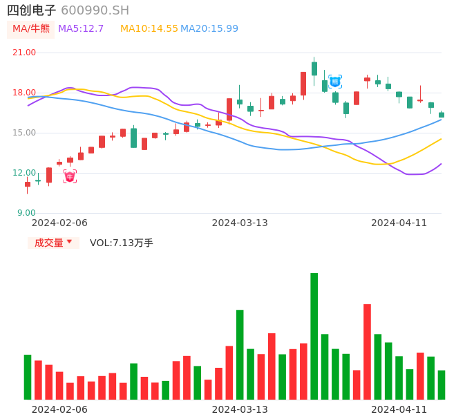 04月11日,四创电子收报16.16,股价涨幅-4.27%,成交金额1.17亿元,换手率2.65%。