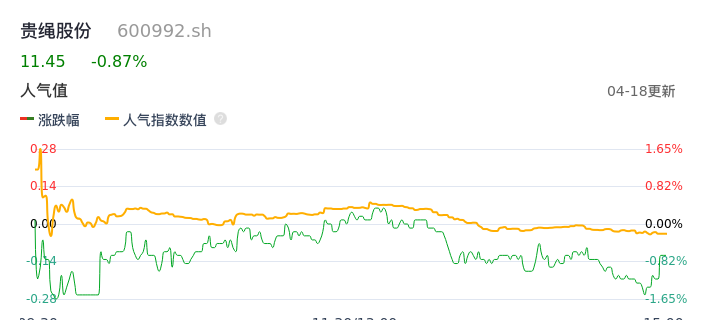04月18日,贵绳股份收报11.45,股价涨幅-0.87%,成交金额5241.11万元,换手率1.87%。