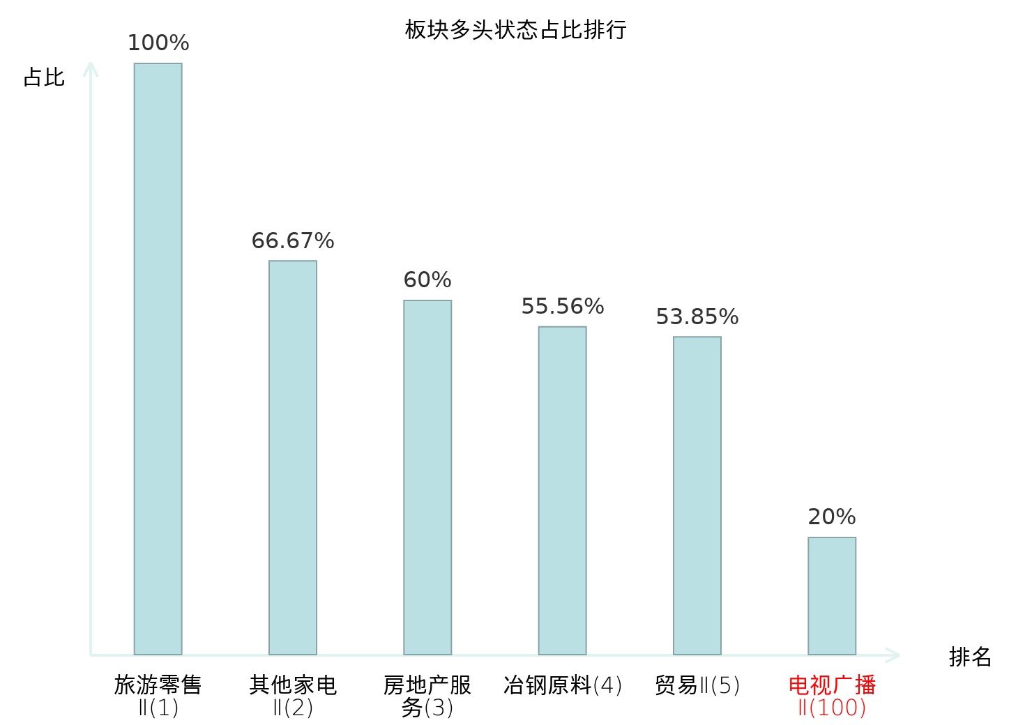 全市场所有行业板块中主力多头状态占比排名中,旅游零售Ⅱ板块位居第一。保险Ⅱ板块名次提升最快,较昨日上升65位。