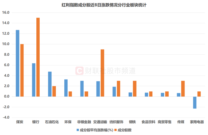 注:红利指数成分股近8日涨跌情况分行业板块统计(截至10月20日收盘)