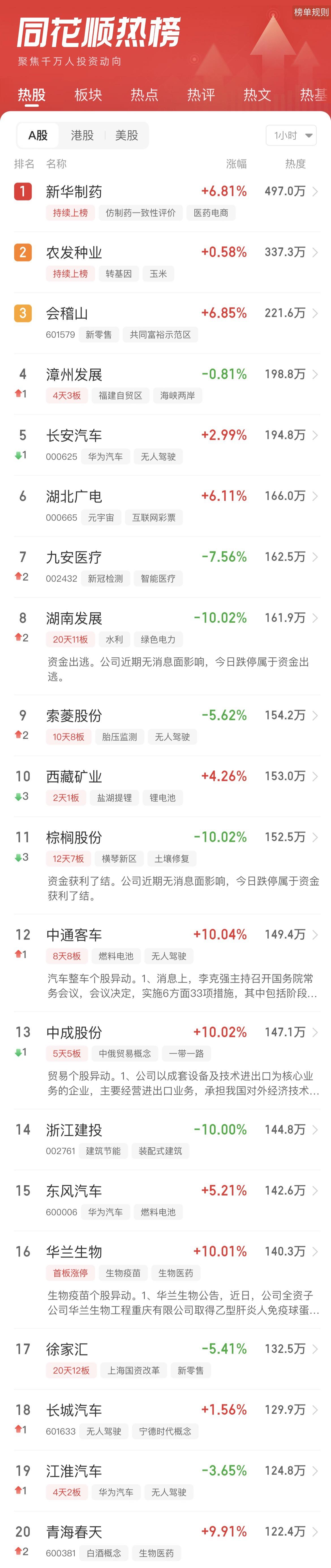 盘面上,汽车整车板块高开低走,中通客车涨停,走出八连板,海马汽车午后拉升封涨停板,广汽集团、上汽集团、长安汽车等跟随板块走势高开低走;食品加工制造板块午后一度拉升翻红,尾盘再度跳水,板块内阳光乳业、青岛食品、西麦食品涨停;互联网电商全天领跌,午后持续走低,丽人丽妆跌停,青木股份跌超9%;新冠治疗再度下杀,君实生物跌停。