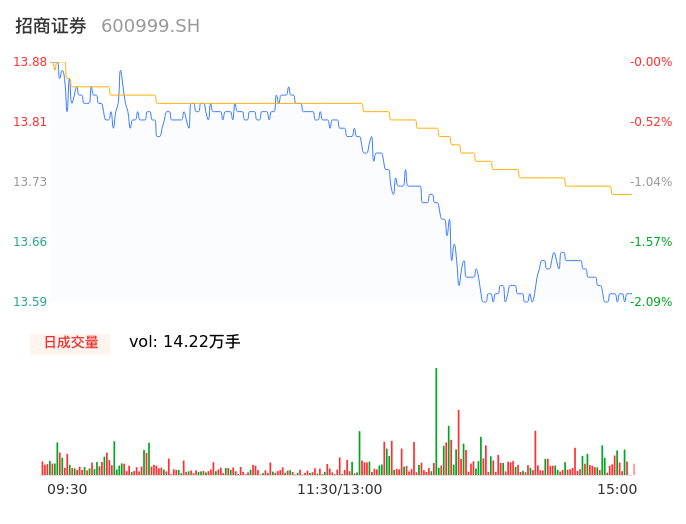 04月10日,招商证券收报13.61,股价涨幅-1.95%,成交金额1.95亿元,换手率0.19%。