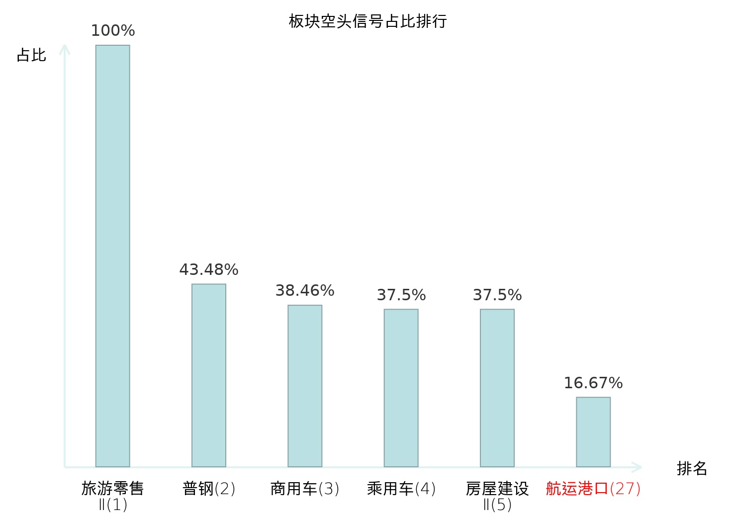 全市场所有行业板块中主力空头信号占比排名中,旅游零售Ⅱ板块位居第一。普钢板块名次提升最快,较昨日上升114位。