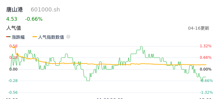 04月16日,唐山港收报4.53,股价涨幅-0.66%,成交金额2.73亿元,换手率1.01%。