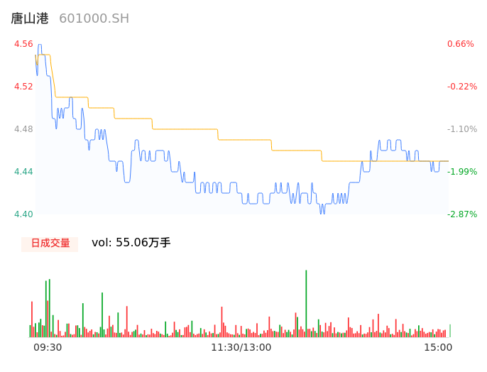 04月26日,唐山港收报4.44,股价涨幅-1.99%,成交金额2.45亿元,换手率0.93%。