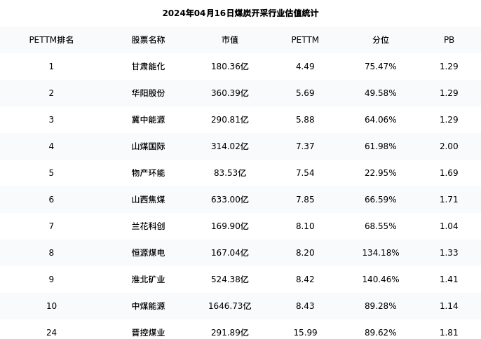 从估值角度看:晋控煤业最新市盈率PETTM为15.99,在行业内排名24/30,处于89.62分位。
