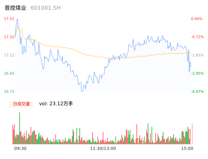 04月16日,晋控煤业收报17.02,股价涨幅-2.41%,成交金额3.96亿元,换手率1.38%。
