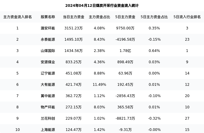 从主力资金流向来看,煤炭开采行业今日主力资金流入24.62亿元,在所有申万二级行业中排名:71/131。