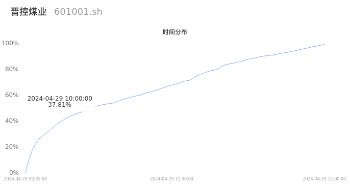 601001晋控煤业2024年04月29日成交43.87万手,成交金额6.67亿元,相较昨日放量6999手,换手率2.62%,成交清淡。