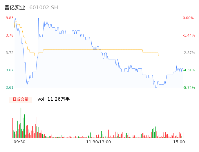 04月15日,晋亿实业收报3.67,股价涨幅-4.18%,成交金额4173.74万元,换手率1.18%。