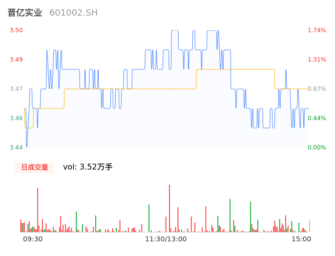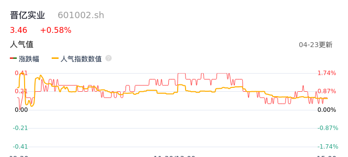 04月23日,晋亿实业收报3.46,股价涨幅0.58%,成交金额1222.34万元,换手率0.37%。