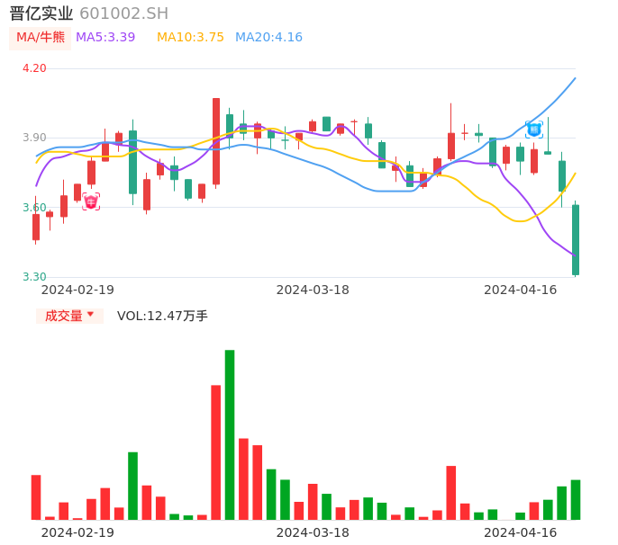 04月16日,晋亿实业收报3.31,股价涨幅-9.81%,成交金额4254.27万元,换手率1.31%。