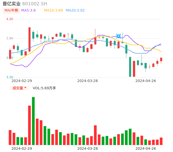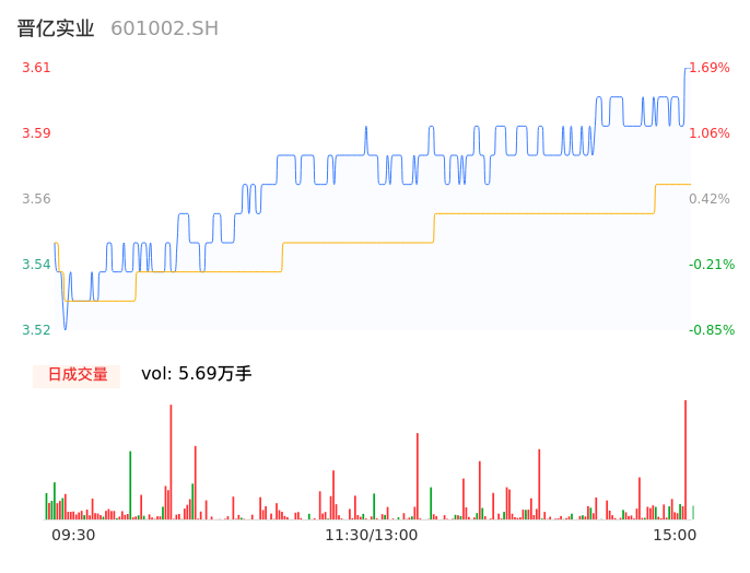 04月26日,晋亿实业收报3.60,股价涨幅1.41%,成交金额2029.44万元,换手率0.60%。
