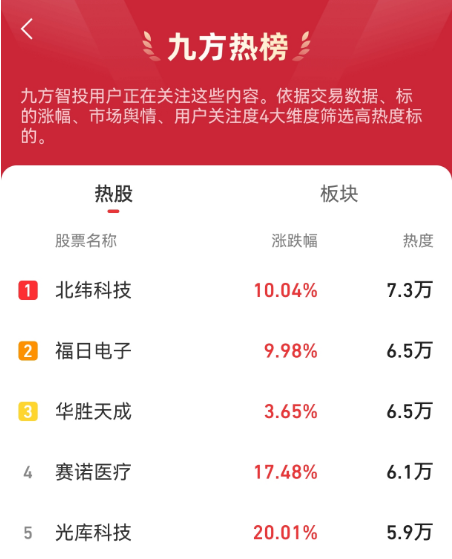 九方智投:北纬科技、福日电子、华胜天成、赛诺医疗、光库科技