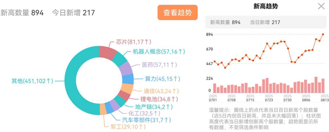 从百日新高,判断板块轮动节奏还是比较准的,昨日的百日新高数据再创新高,目前是在芯片>机器人(自主可控)>医药>算力,芯片板块重回C位