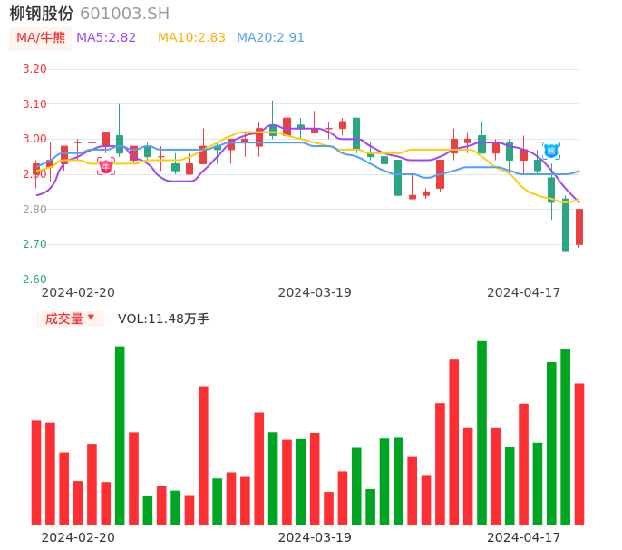 04月17日,柳钢股份收报2.80,股价涨幅4.48%,成交金额3169.85万元,换手率0.45%。