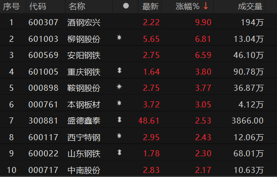 钢铁板块快速拉升 酒钢宏兴涨停