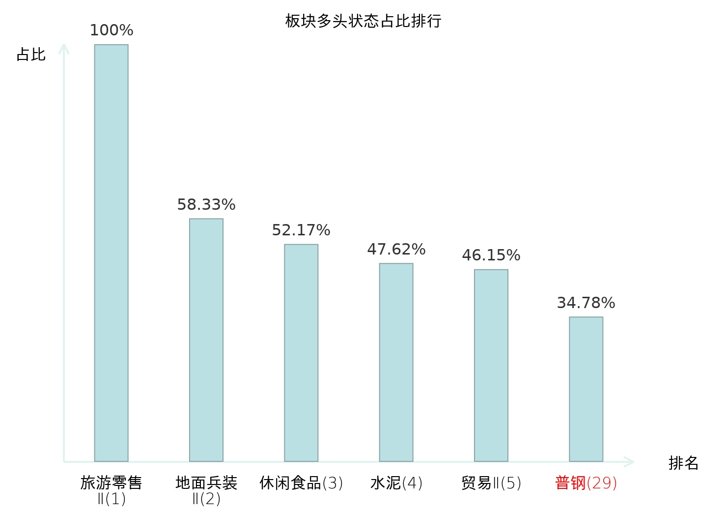 从主力宝信号数据分析,重庆钢铁所属的普钢板块中有8只股票处于主力多头状态,主力多头状态占比在全行业中排名第29位,较昨日下降3位。排名的下降可能反映了主力对普钢板块态度的一些调整。全市场所有行业板块中,旅游零售Ⅱ板块的主力多头状态占比最高,位居第一;焦炭Ⅱ板块名次提升最快,较昨日上升82位。这些变动揭示了不同行业间主力资金动向的趋势,为投资者提供了关于市场情绪和潜在投资机会的重要线索。
