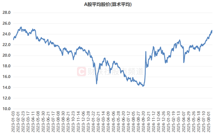 财联社8月17日讯(编辑 梓隆),近期,随着各大指数持续走高,市场个股平均股价也不断攀升。截至8月15日数据,其目前均价已达24.69元,创2023年4月以来新高,同时,较今年4月7日低点(18.66元)增长近32.3%。