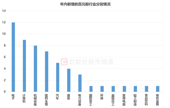 注:年内新增的百元股行业分别情况(截至8月15日数据)