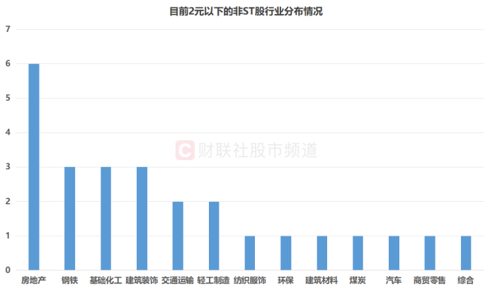 注:目前2元以下的非ST股行业分布情况(截至8月15日数据)