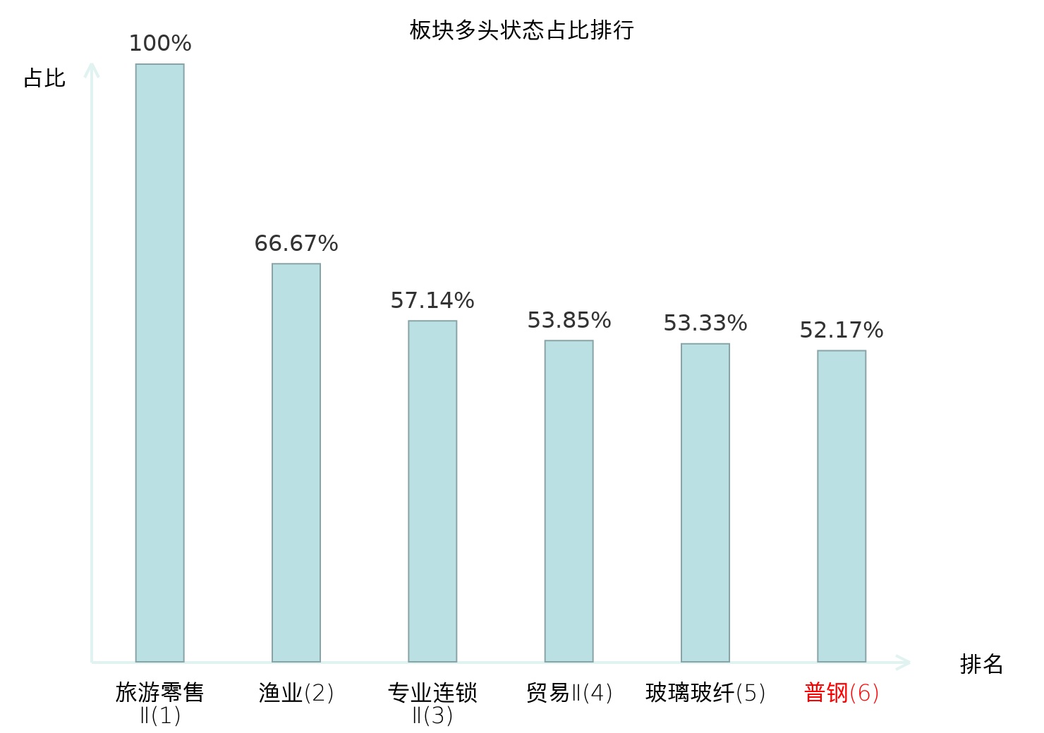 从主力宝信号数据分析,重庆钢铁所属的普钢板块中共有12只股票处于主力多头状态,主力多头状态占比在全行业中排名第6位,较昨日上升25位。较高的排名说明主力对于该板块整体看多意愿较强,此次排名上升可能反映了主力对普钢板块的积极态度增强。全市场所有行业板块中,主力多头状态占比排名中,旅游零售Ⅱ板块位居第一。农业综合Ⅱ板块名次提升最快,较昨日上升83位。这些变动揭示了不同行业间主力资金动向的趋势,为投资者提供了关于市场情绪和潜在投资机会的重要线索。