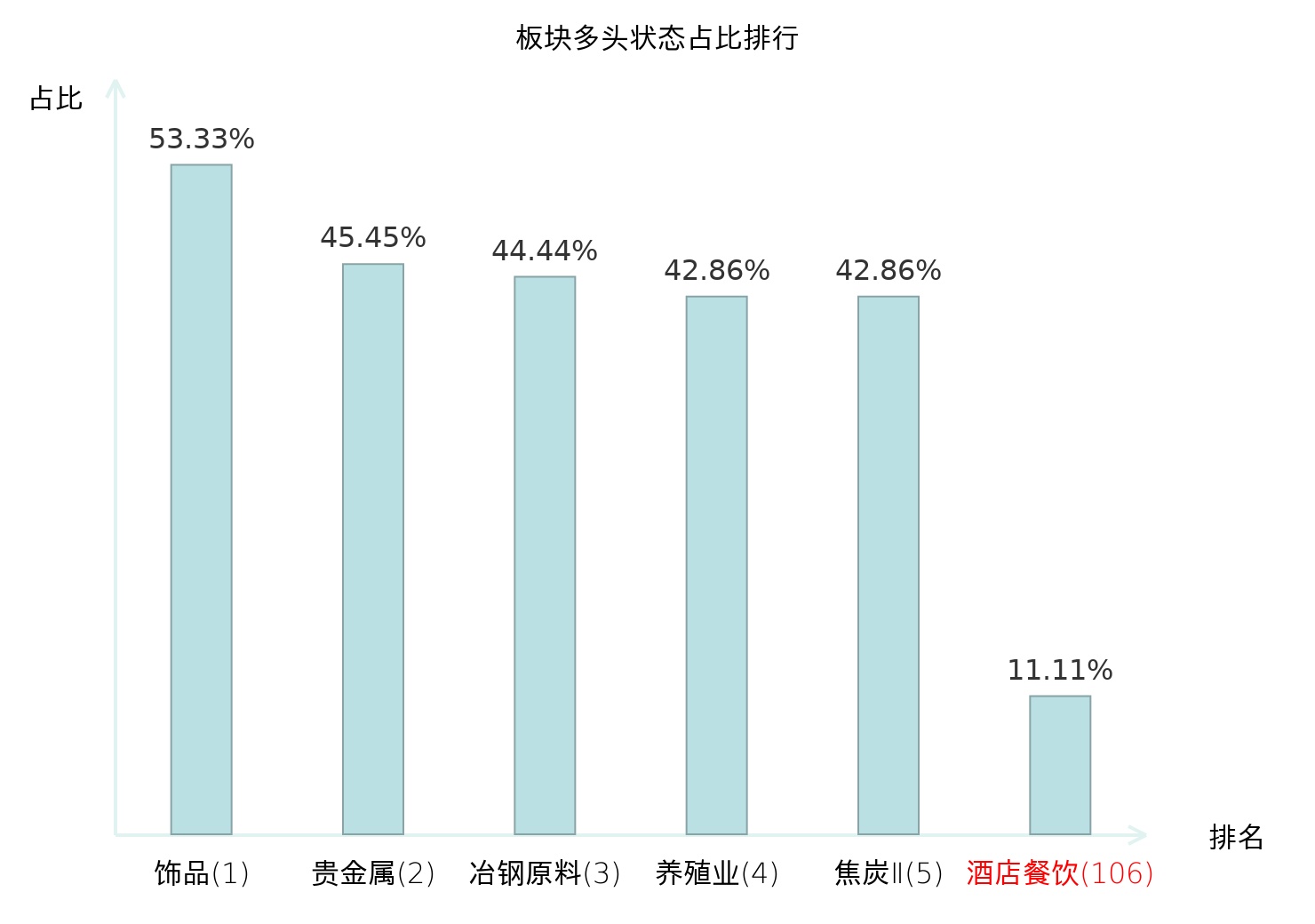 从主力宝信号数据分析,金陵饭店所属的酒店餐饮板块中共有1只股票处于主力多头状态,主力多头状态占比在全行业中排名第106位,较昨日上升8位。较高的排名表明主力对酒店餐饮板块整体看多意愿较强,此次排名上升可能反映了主力对该板块态度的积极调整。全市场所有行业板块中,饰品板块的主力多头状态占比最高,位居第一。非金属材料Ⅱ板块名次提升最快,较昨日上升58位。这些变化揭示了不同行业间主力资金偏好的调整,为投资者提供了关于市场趋势的重要参考。