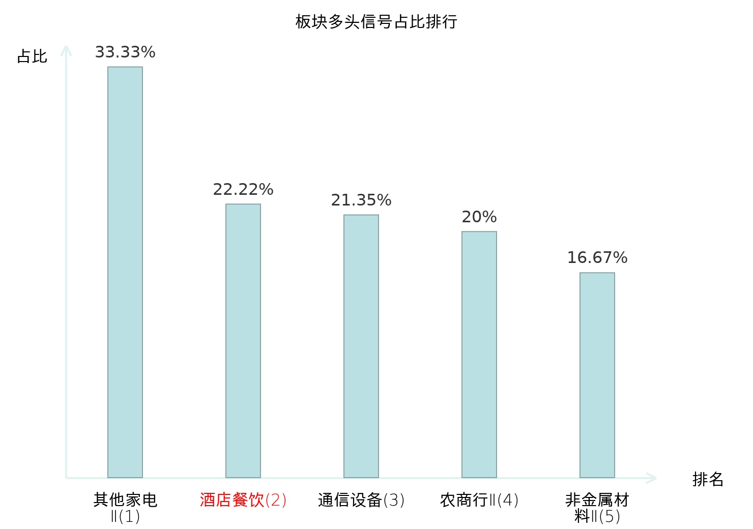全市场所有行业板块中主力多头信号占比排名中,其他家电Ⅱ板块位居第一。其他家电Ⅱ板块名次提升最快,较昨日上升128位。
