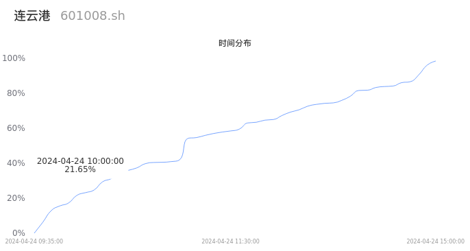 601008连云港2024年04月24日成交5.60万手,成交金额2108.18万元,相较昨日缩量9368手,换手率0.45%,成交清淡。