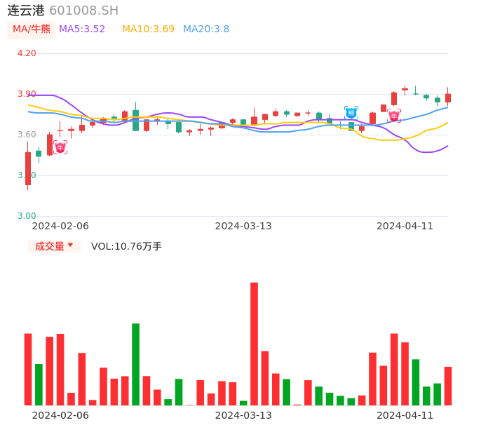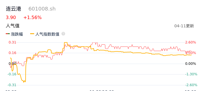 04月11日,连云港收报3.90,股价涨幅1.56%,成交金额4191.56万元,换手率0.87%。
