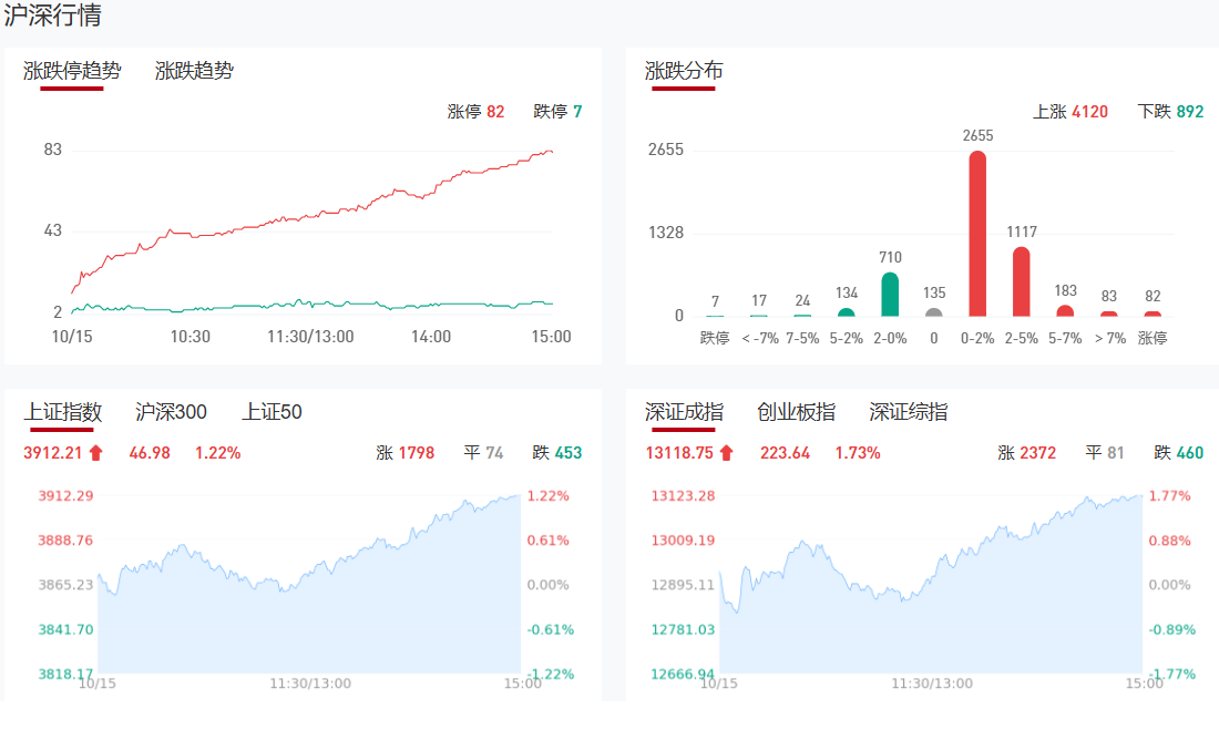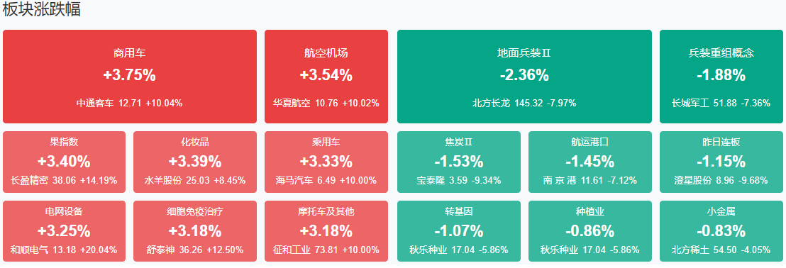 板块方面,汽车、电网设备、医药等板块涨幅居前,港口航运、光刻机等板块跌幅居前。截至收盘,沪指涨1.22%,深成指涨1.73%,创业板指涨2.36%。