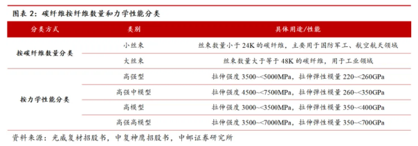碳纤维主要有三种分类方式:从原材料角度、产品规格角度、力学性能角度。