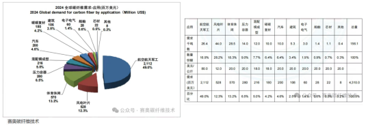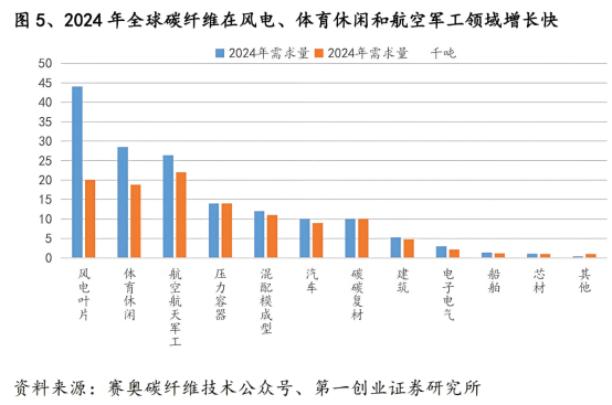 风电市场此前对碳纤维的需求疲软,2024年由疲转强,实现了120%的高速增长;