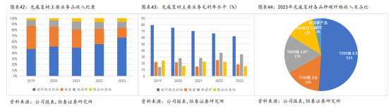 市场表现:碳纤维及织物是公司最重要的营收和利润来源,2023年碳纤维业务收入16.67亿元。