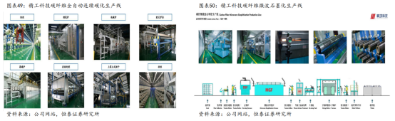 江苏恒神:榆林恒神投资的47.35亿,2万吨高性能碳纤维项目开工项目,主要包括:新建20条大丝束湿纺原丝生产线、湿纺碳化生产线、干喷湿纺原丝生产线、干喷湿纺碳化生产线以及配套的公用工程和辅助生产设施等。