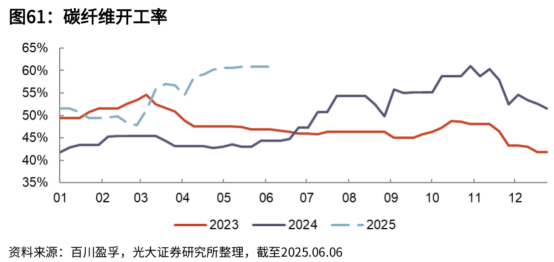碳纤维行业产能不断释放的同时开工率开始回升: