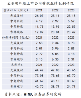 第三类低成本工业应用企业,主要针对是风电叶片、新能源汽车、轨道交通、常规体育器材、常规热场材料、新型功能材料等。吉林化纤上海石化、宝旌、蓝星、新疆隆矩为代表。