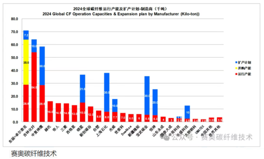 全球十强:韩国晓星新进入,吉林化纤集团、中复神鹰、新创碳谷三家中国大陆企业。2024年已经宣布并在进行中的扩产有: