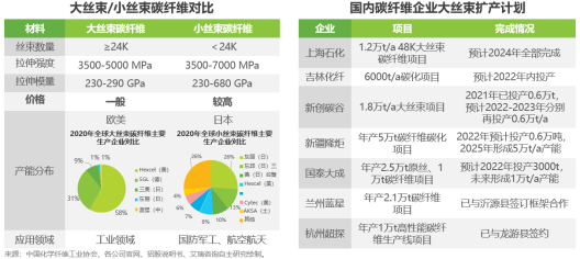 市场布局:大丝束碳纤维生产技术难度大但成本低,有助于提高下游企业应用碳纤维的积极性。