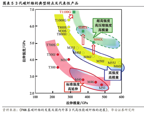 第三代碳纤维:日美从两条不同的技术途径都获得了高强度、高模量碳纤维。