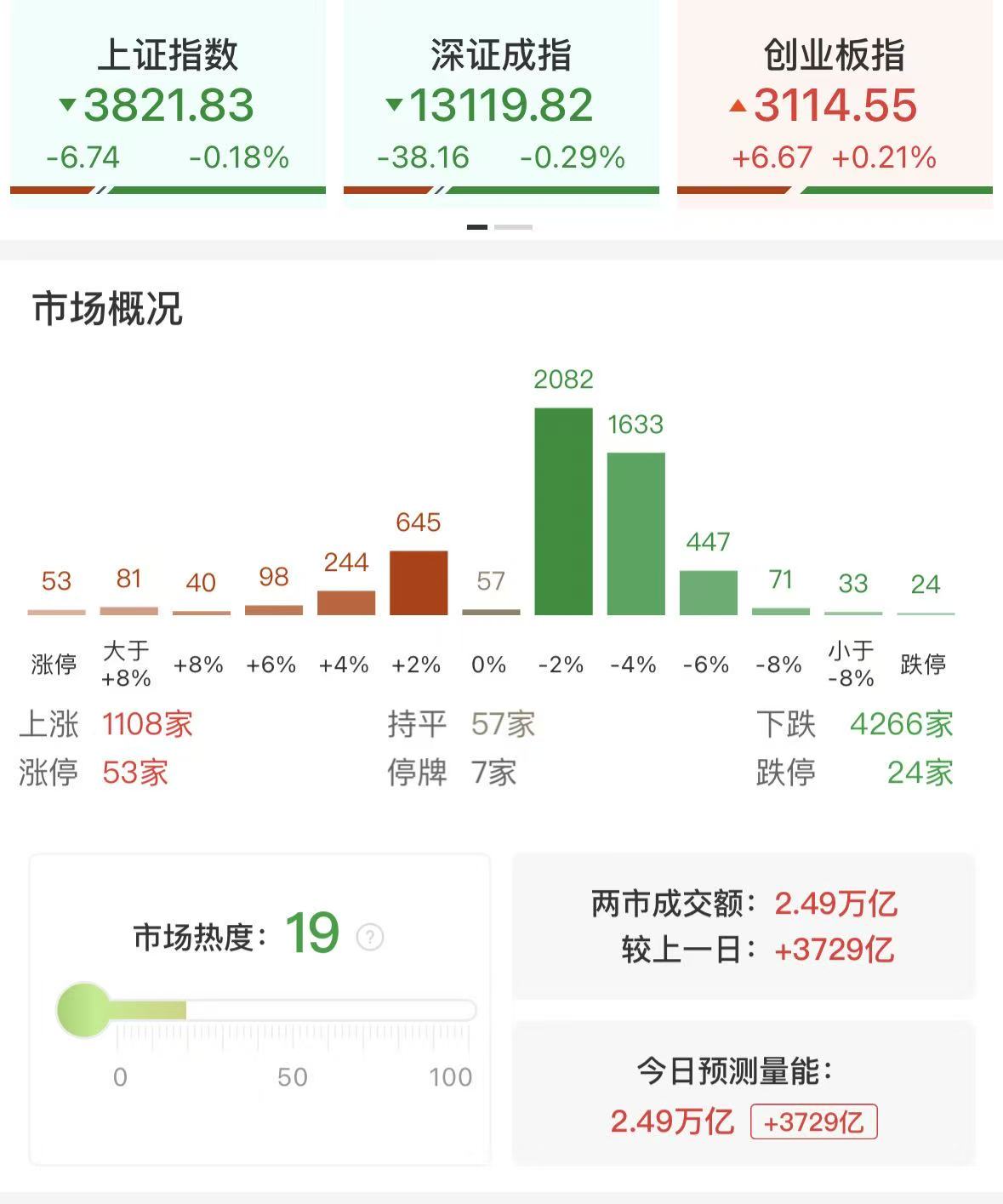 财联社9月23日讯,市场探底回升,创业板尾盘快速翻红,此前一度跌逾2%。沪深两市成交额2.49万亿,较上一个交易日放量3729亿。从板块来看,防御类板块全天表现活跃,银行股逆势上涨。港口航运板块震荡拉升,南京港、宁波海运双双涨停。半导体板块尾盘探底回升,长川科技20cm涨停,德明利3连板续创新高,张江高科、凯美特气尾盘涨停。下跌方面,高位人气股出现分化,云南旅游、香江控股跌停,红豆股份冲板回落翻绿。截至收盘,沪指跌0.18%,深成指跌0.29%,创业板指涨0.21%。