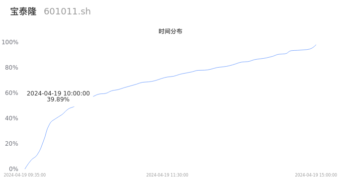 601011宝泰隆2024年04月19日成交40.09万手,成交金额9617.21万元,相较昨日放量2.92万手,换手率2.09%,成交清淡。
