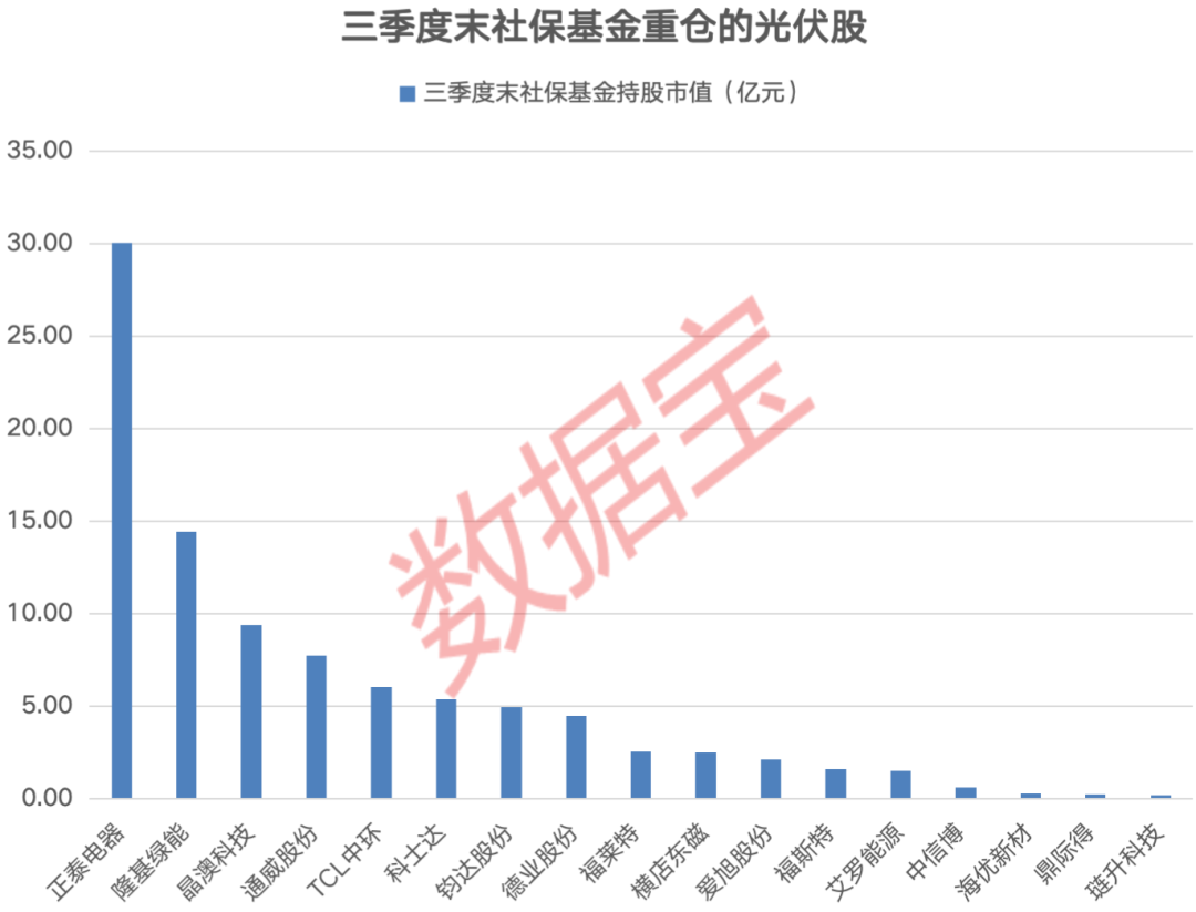 随着光伏产业链价格持续回升,概念股获得多路资金关注。统计显示,三季度末17股获社保基金重仓,其中7股为新进重仓,包括隆基绿能、爱旭股份、福斯特等,TCL中环、晶澳科技获社保基金持股数量环比增长。