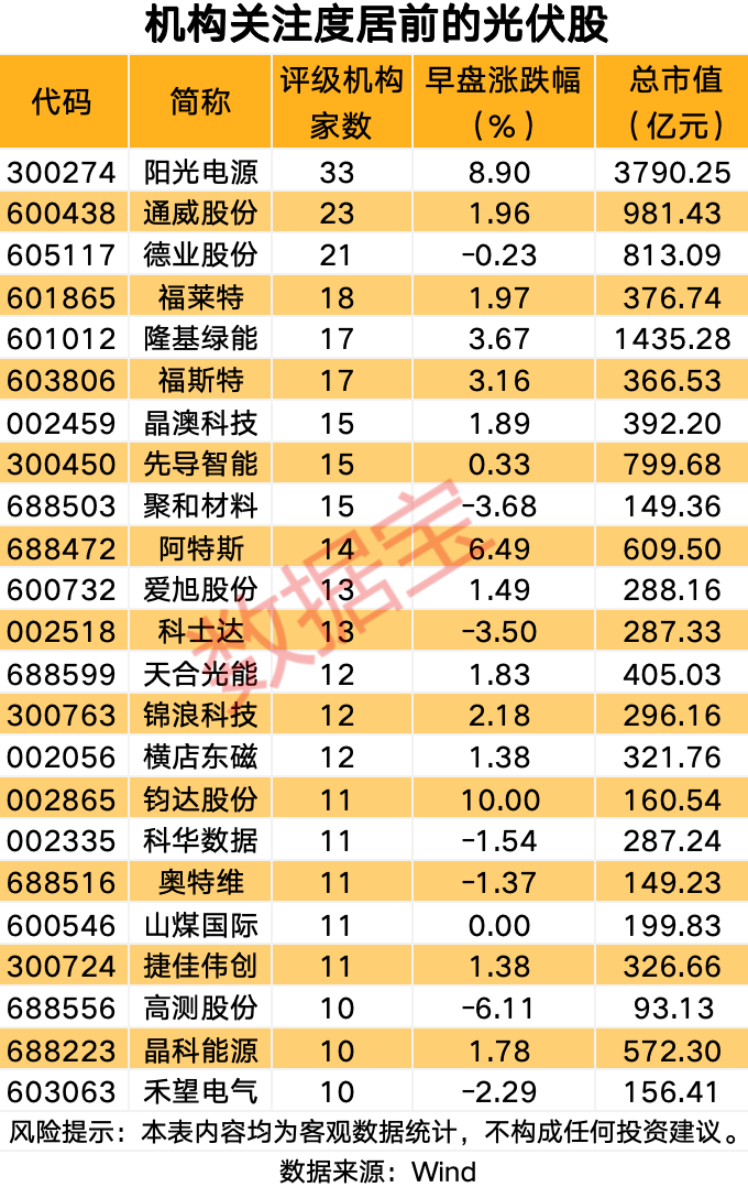 光伏板块多股大涨。