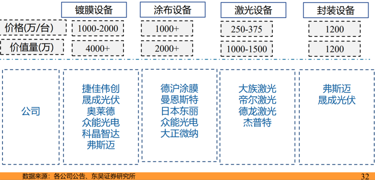 2)设备:曼恩斯特、捷佳伟创、京山轻机、大族激光、帝尔激光、德龙激光、杰普特、奥来德等;