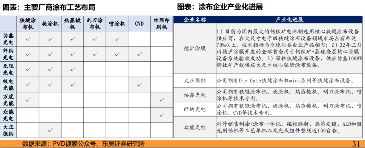 在制造设备方面,钙钛矿组件的生产制造需要成熟的专用设备;