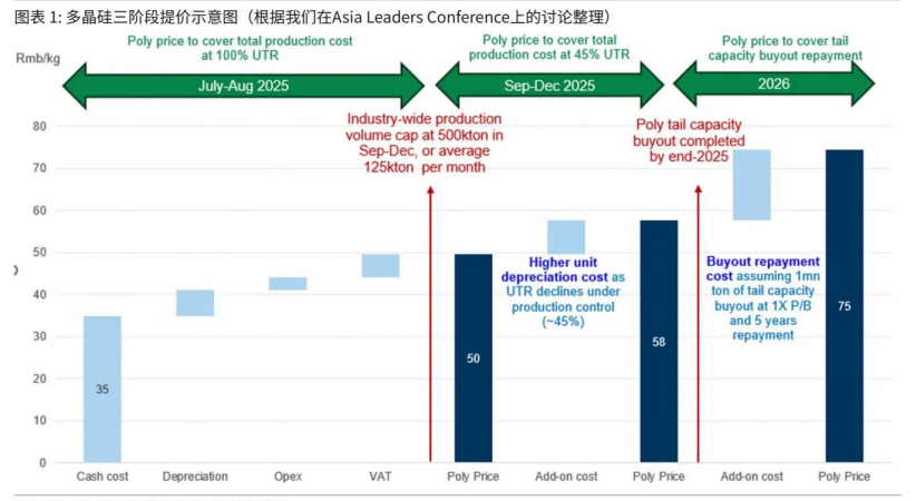 在图表1中,高盛以图示说明了我们在Asia LeadersConference小组会议上讨论的多晶硅三阶段提价。