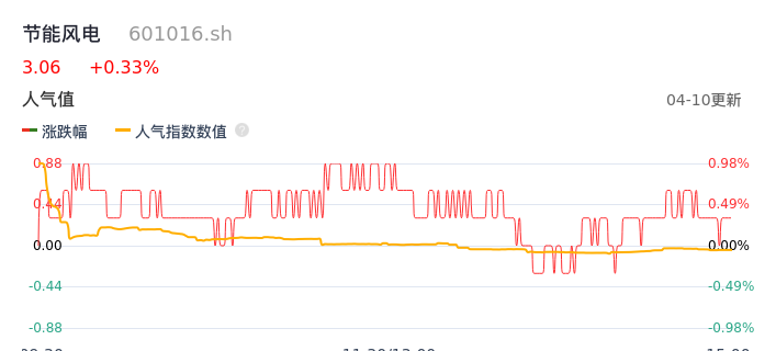 04月10日,节能风电收报3.06,股价涨幅0.33%,成交金额2.24亿元,换手率1.23%。