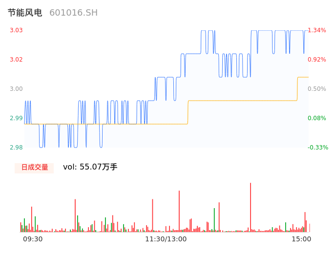 04月26日,节能风电收报3.03,股价涨幅1.34%,成交金额1.66亿元,换手率0.92%。