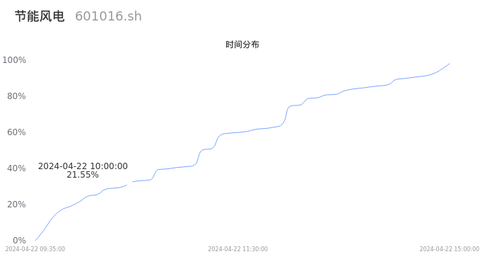 601016节能风电2024年04月22日成交54.50万手,成交金额1.66亿元,相较昨日缩量2.35万手,换手率0.91%,成交清淡。